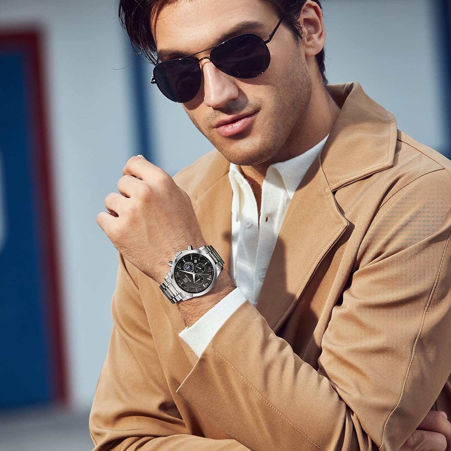 - 💎【PREMIUM QUALITY WATCHES】We are providing watches for men with Premium Quality quartz movement with analog and date display with incredibly durable and can last a lifetime when properly maintained with this man watch made clearly. Multi-Function chronograph watch with three sub-dials for second, minute and hour.