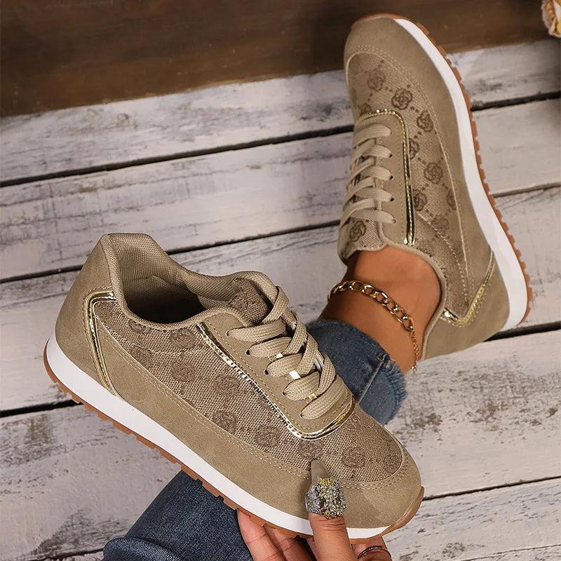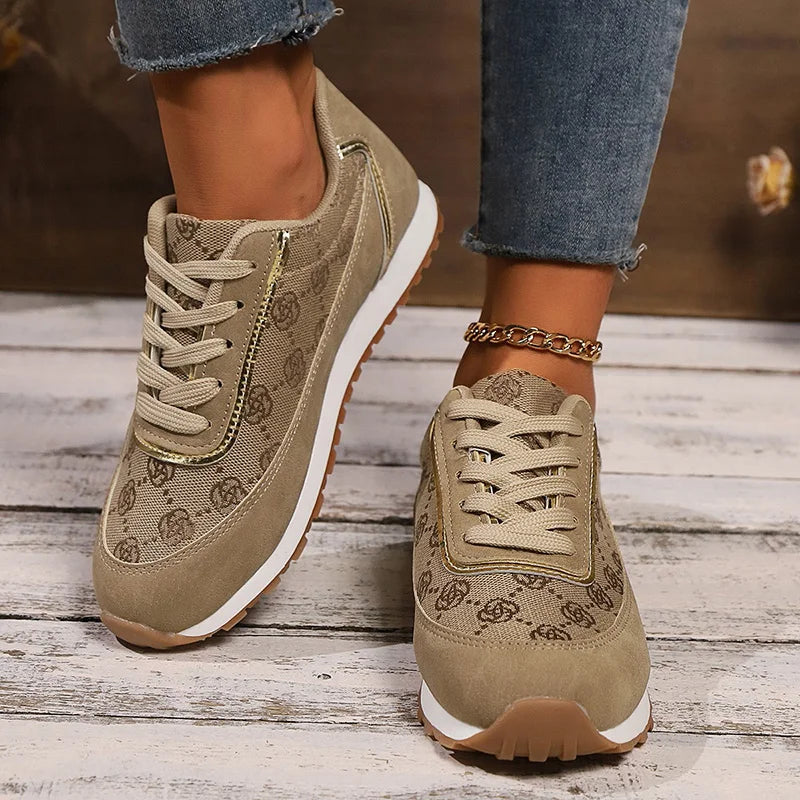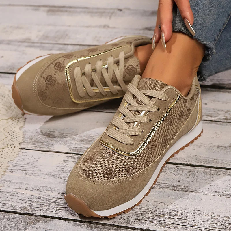 Mesh Breathable Women Casual Sneakers Lace-Up Print Flat Shoes Ladies Platform Sneakers Female Shoes Plus Size Zapatos De Mujer