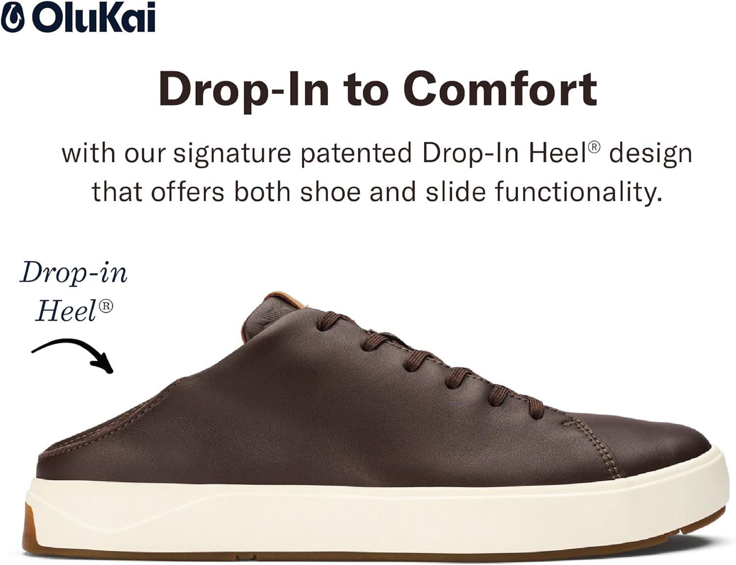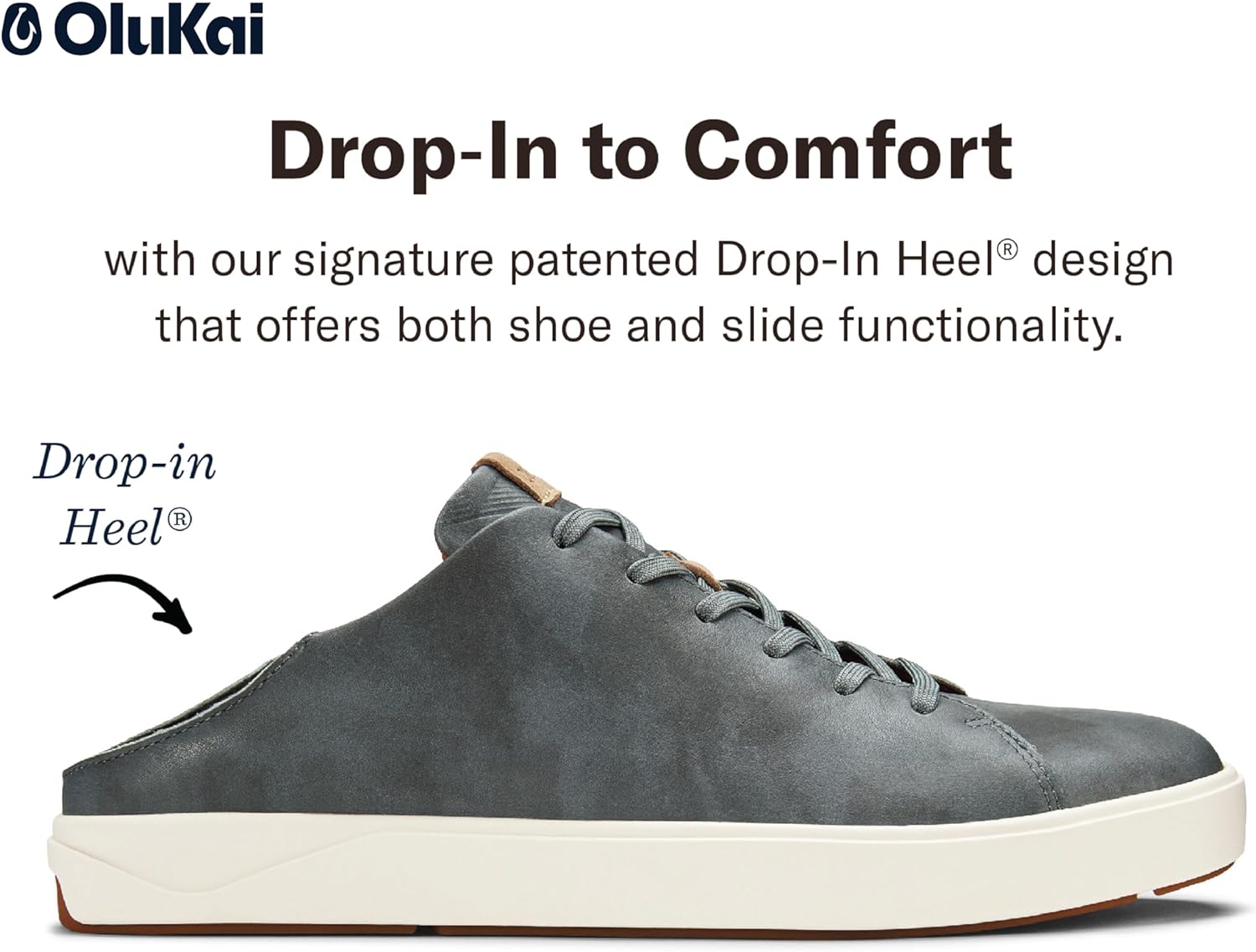 OLUKAI Lae'ahi Li 'ILI Men's Leather Sneakers, Supple Full-Grain Leather Shoes, Drop-in Heel & All Weather Rubber Soles